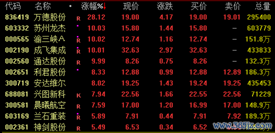 部分军工股今日再度爆发,截至收盘,万德股份涨超28%,苏州龙杰、渝三峡A、成飞集成、通达股份等涨停,利君股份、安达维尔涨超8%。