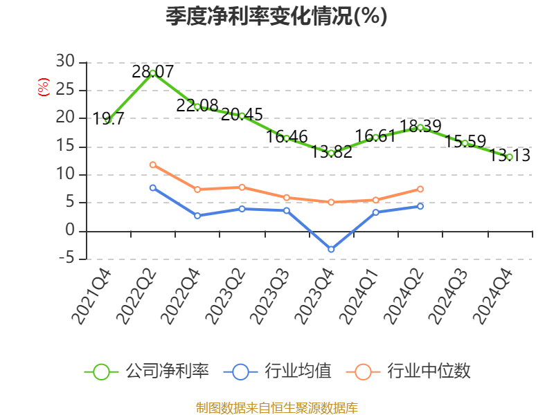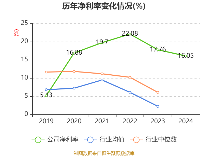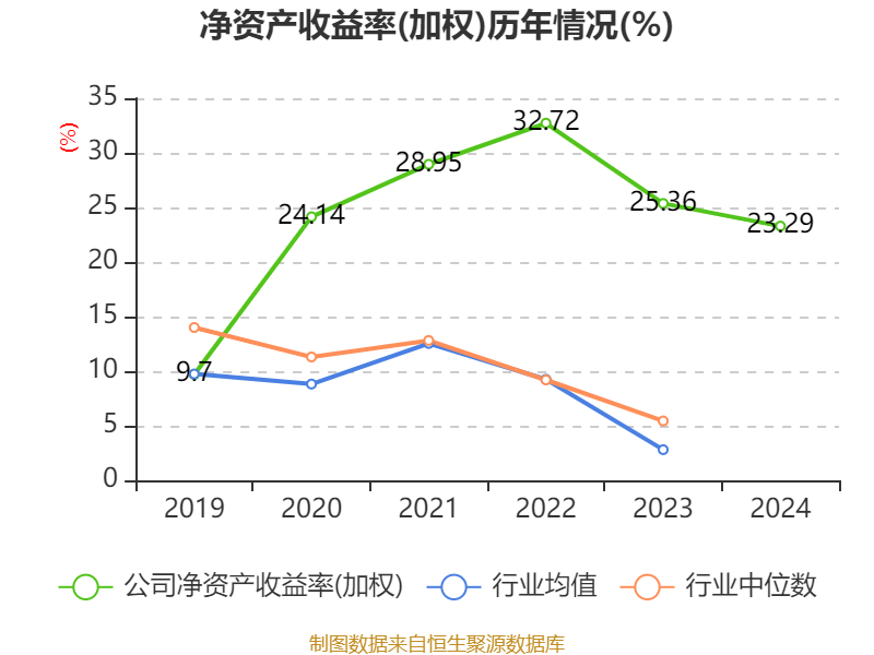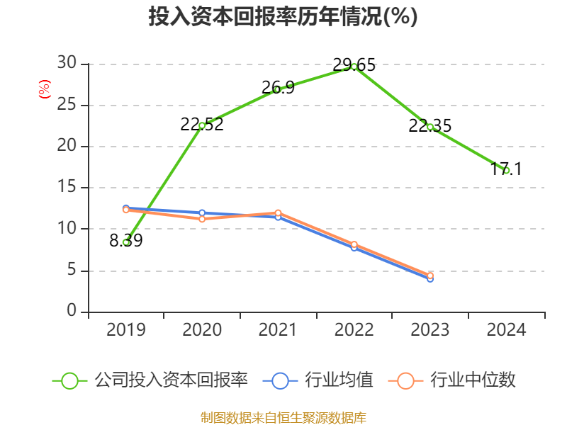 数据显示,2024年公司加权平均净资产收益率为23.29%,较上年同期下降2.07个百分点。公司2024年投入资本回报率为17.1%,较上年同期下降5.25个百分点。