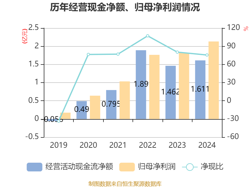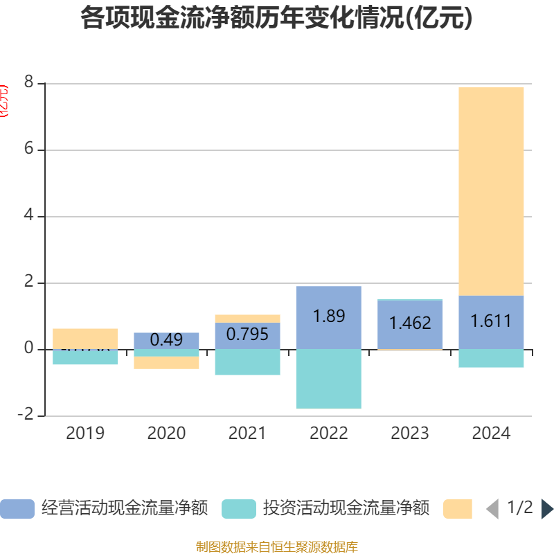 截至2024年,公司经营活动现金流净额为1.61亿元,同比增长10.14%;筹资活动现金流净额6.26亿元,同比增加6.3亿元;投资活动现金流净额-5536.03万元,上年同期为357.86万元。