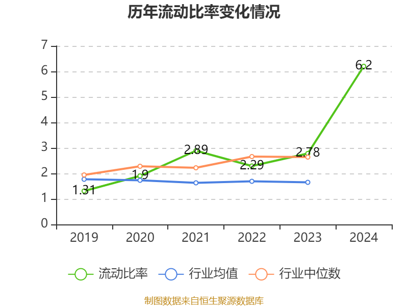 2024年,公司流动比率为6.2,速动比率为5.26。